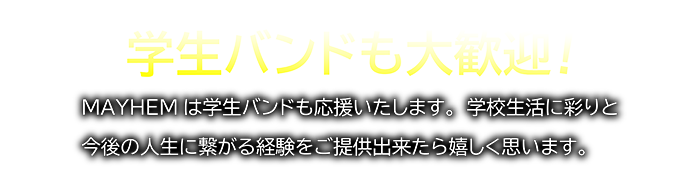 TEL 084-982-5392 Mail info@live_gym_mayhem.jp