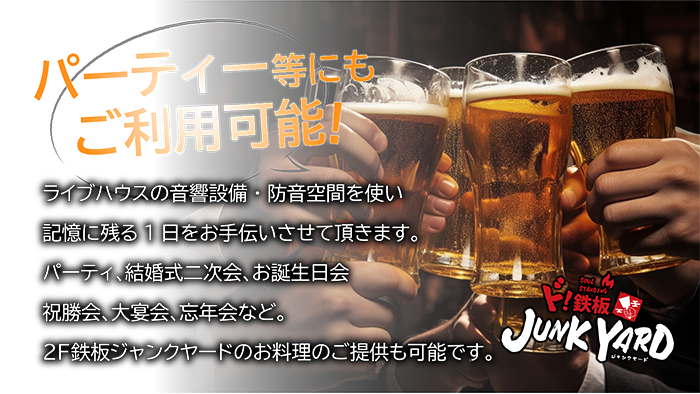 当店2Fの鉄板ジャンクヤードを楽屋としてご利用できます。